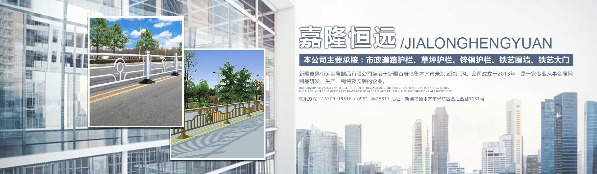 新疆嘉隆恒遠(yuǎn)金屬制品有限公司坐落于新疆首府烏魯木齊市米東區(qū)鐵廠溝。公司成立于2013年,是一家專業(yè)從事金屬網(wǎng)制品研發(fā)、生產(chǎn)、銷售及安裝的企業(yè)。 本公司主要承接 市政道路護(hù)欄、草坪護(hù)欄、鋅鋼護(hù)欄、鐵藝圍墻、鐵藝大門。 公司購(gòu)進(jìn)一批新的生產(chǎn)設(shè)備,生產(chǎn)能力、廠區(qū)環(huán)境得到大步提升、我公司將以全新的面貌、以更優(yōu)質(zhì)的產(chǎn)品、更高的效力、為你提供更全面的服務(wù)。 公司承諾將以齊全的品種、優(yōu)質(zhì)的產(chǎn)品、良好的服務(wù)、超值的價(jià)位竭誠(chéng)為廣大新老客戶服務(wù)。 隨著西部大開發(fā)的加快,我公司將依托新疆有利的資源,打造出新疆生產(chǎn)規(guī)模大、品種全的生產(chǎn)基地,迎接更美好、更輝煌的明天。 歡迎來電咨詢,實(shí)地考察,一次合作,終身是友。